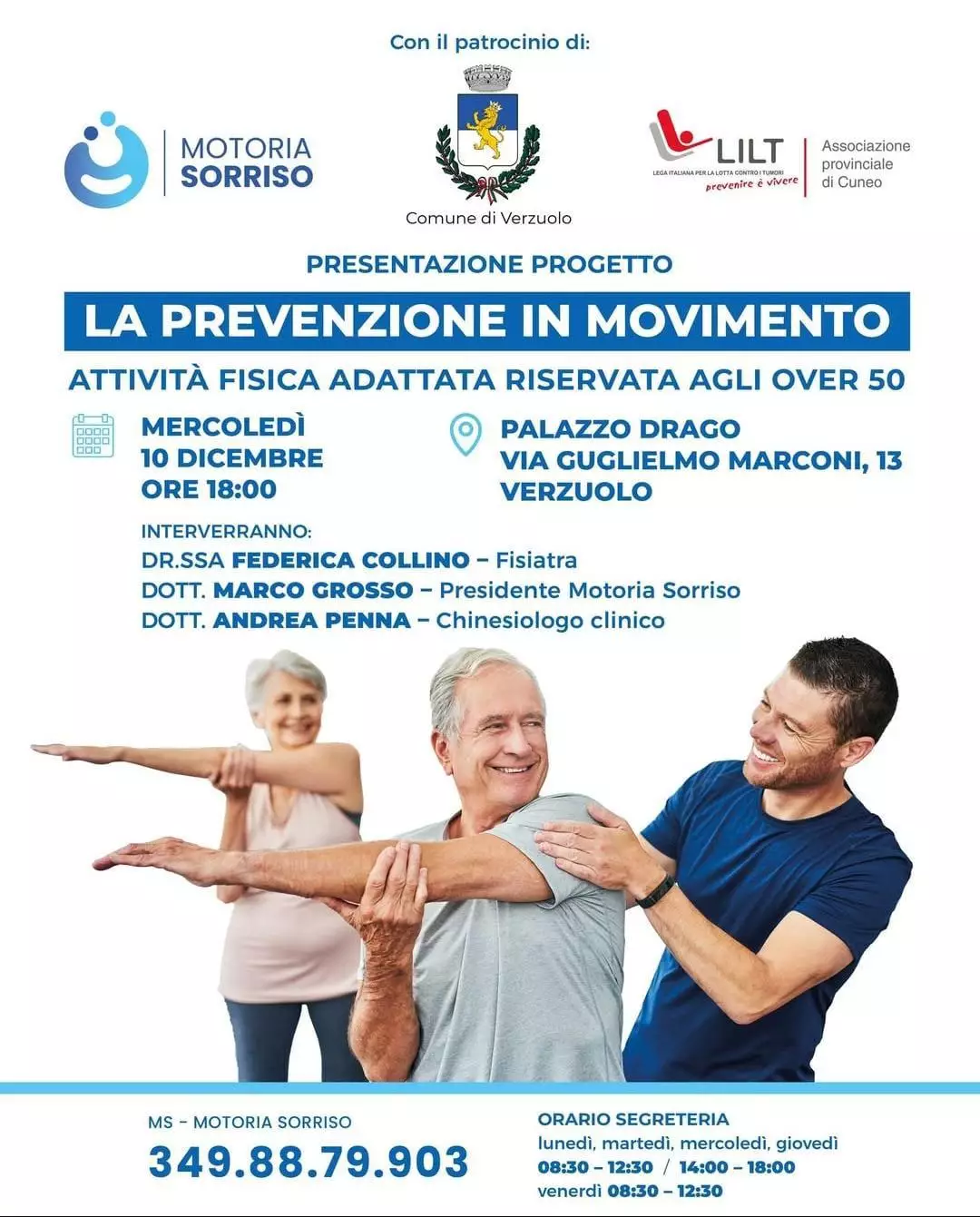 "La prevenzione in movimento". È il progetto che si presenta oggi, mercoledì 10 dicembre, alle 18, a Palazzo Drago di Verzuolo.